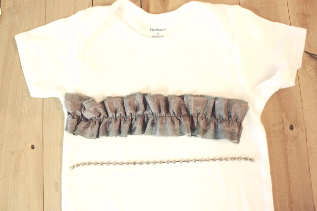 Ruffle found at Hobby Lobby in the scrapbooking section although you can make your own ruffle out of your own fabric. |